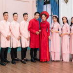 Áo dài bưng quả màu trắng không chỉ thể hiện sự tinh tế mà còn tôn vinh nét đẹp thuần khiết của buổi lễ cưới. Năm 2025, những mẫu áo dài trắng tối giản, nhẹ nhàng và đồng bộ chắc chắn sẽ tiếp tục là lựa chọn hoàn hảo cho mọi cặp đôi.